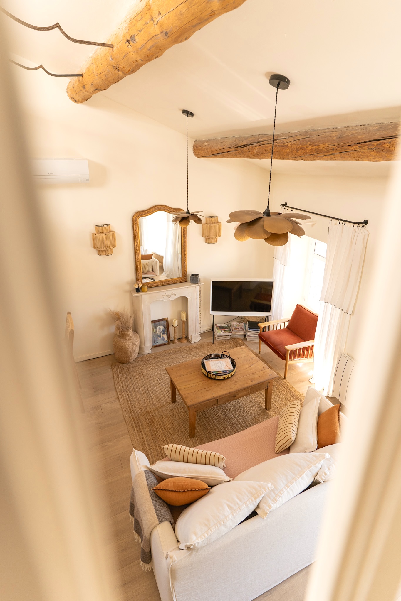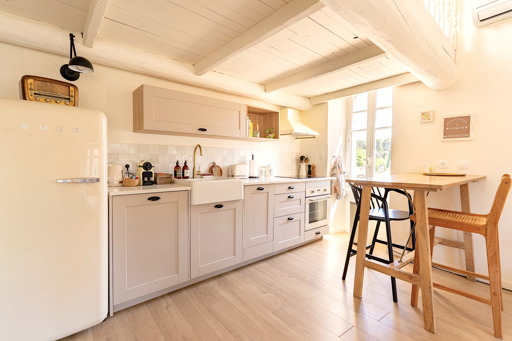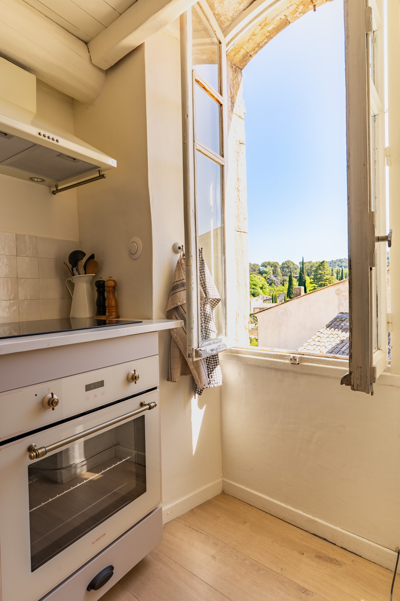 Notre charmant duplex niché au troisième et dernier étage d’une ancienne maison de maître vous accueille au cœur de Lourmarin, à quelques pas des nombreux commerces et restaurants. Baigné de lumière tout au long de la journée, ses fenêtres offrent une vue imprenable sur la place principale animée, le beffroi centenaire et les toits du village.